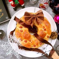 12.Put it in a warm and humid place for final fermentation.When fermentation is complete, brush the surface with egg wash and sprinkle the remaining sausage on top.