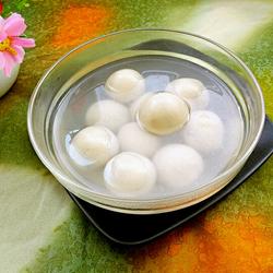 8. After the water boils, cook the glutinous rice balls for about three minutes.The glutinous rice balls will float and become cooked.