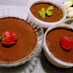 10. Take out the refrigerated mousse, spray the surface with chocolate powder, and decorate with strawberries.Ready to enjoy!
