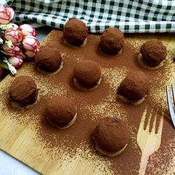 7. Roll the chocolate balls into balls and quickly roll them in the chocolate sauce.Use a fork to take them out alternately and place them in the cocoa powder box