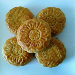 13. Preheat the oven at 200 degrees for ten minutes and put the mooncakes on the baking tray