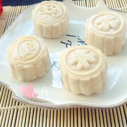 8.Add an appropriate amount of cooked glutinous rice flour into the mooncake mold, and then put the snowskin dough into it