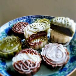 14. Turn the mold over and press it twice with the palm of your hand.Don’t use too much force.Slowly roll the mooncakes out.Separate from the mold, each artistic snowskin mooncake is completed.