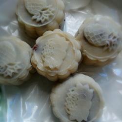 4.Wrap the bean paste in the ice skin just like making dumplings, then put it into the mold and press out the shape.