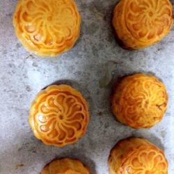 7. Take out the mooncakes, coat them with egg wash, put them in the oven at 180 degrees for twenty minutes.Delicious mooncakes are out of the oven.