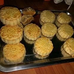 4. Flatten the small dough into the filling, then Wrap some dry flour to prevent sticking, and use a mold to press out the mooncake shape