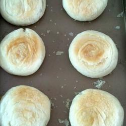 16. Place the seams side down into the baking pan, and press each one flat with your hands.