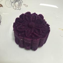 4.Take a small ball of purple potato noodles and press it into a round cake