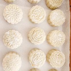 16. Dip some cake flour into the mold and shape it, and the snowskin mooncake is ready.I hope you all like it and wish you all a happy Mid-Autumn Festival!