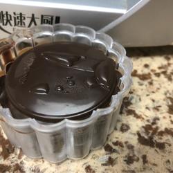 3.Pour the box of dark chocolate crispy crust into the melting pot and let it melt.Place a thin layer on the bottom of each mooncake mold, freeze for five minutes to solidify, take it out and set aside