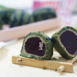 6.Take half of the dough, add matcha powder and knead it into a green dough.