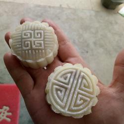 6.Put the stuffing into the wrapper and roll it into a ball.Dip it in a little cooked glutinous rice flour and put the mooncake into the mold to press out the shape.