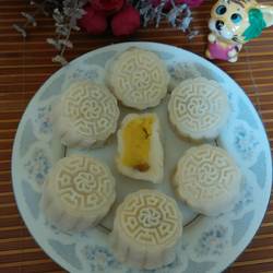 3.Mix the ice skin ingredients and stir evenly.Place in pot and steam for 20 minutes.Take out and let cool.
