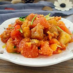 I used sweet mooncakes with assorted fillings, so I added tomatoes and fried them together.If you use salty mooncakes, you can add chili or ham and fry them together.