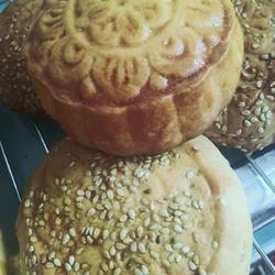 7.The surface of the mooncake after demoulding Spray a little water to prevent drying, put it in the oven at 190 degrees for five minutes, then take it out and lightly brush it with egg wash