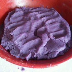 3.Put oil in a non-stick pan, reduce the heat to minimum, add purple sweet potato puree and stir-fry, then add sugar A little (you can taste the sweetness of the purple sweet potato before adding sugar.If it is very sweet, you don’t need to add it.It depends on your own taste) and stir-fry evenly