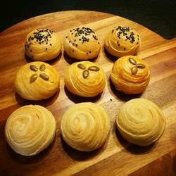 7. Brush with egg wash and garnish with black sesame seeds or pumpkin seeds.You can also leave it undecorated.