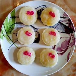 4. Mix the glutinous rice flour and orange powder, add powdered sugar, add olive oil and butter, stir, then Add milk and stir evenly.Put the steamer in the steamer for half an hour.After it's done, take it out while it's hot and stir it into a dough.Set aside.