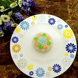 6. Stuff the dough of each color into the flower slices, do not use too much, and make more shapes Use a bamboo skewer to scrape off the flower pieces, and then put the flower pieces into the mold