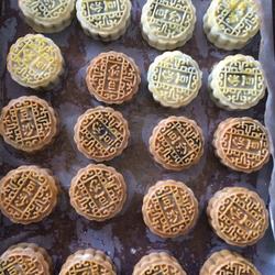 3.30 grams of moon cake skin, 70 grams of bean paste, rounded