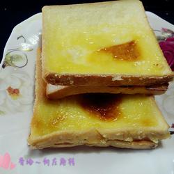 4. Let the toast slices cool slightly, spread salad dressing on the other side, and put Two slices of bread stuck together.