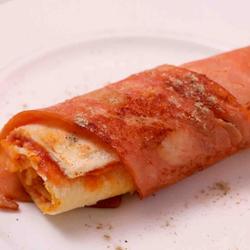 2.Add tomato sauce, crushed boiled eggs, and roll up