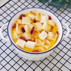 ② Preheat the oven to 180 degrees for 10 minutes.Place the toast pudding in the middle layer of the oven and bake for 20 minutes.