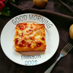 6.Will be fried Spread the side dishes evenly on the toast slices, and then sprinkle a layer of mozzarella shreds