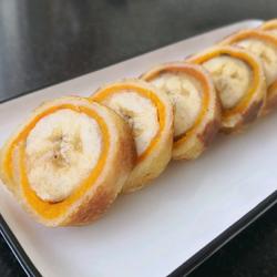 4. Put half a banana, try to choose the straighter part, and roll it up for comparison easy.