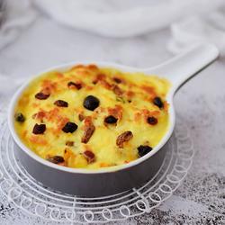 4.Take a baking bowl that can go into the oven , pour all the mixed toast ingredients into the baking bowl