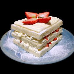 5. Spread cream on top of the toast (squeeze in from the edges) and put it on Add a layer of strawberries, then top with whipped cream, then cover with toast, repeat this step until the second layer is complete.