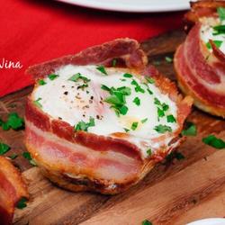 3.Use two slices of bacon to surround the edges to look like a cup.