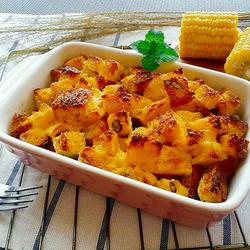 5.Put another layer of toast cubes, and then evenly apply a layer of egg milk