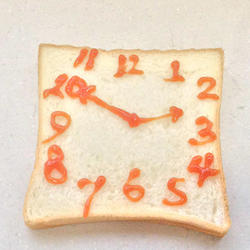 3.Use ketchup to write the numbers on the toast, and then draw the hour and minute hands.