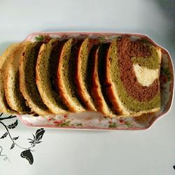 8. Stack three pieces, with original flavor at the bottom, followed by matcha flavor, and cocoa on top.taste.
