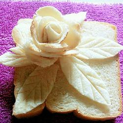 8.Take another piece of toast, dig a small hole, and cut off the long part of the flower.