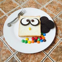 3.Put the Oreos on the bread, and then put an mm bean on the bread