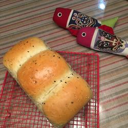 1.Put all the ingredients except butter and black and white sesame seeds into the bread machine bucket;