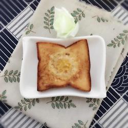 2. Use a mold to make a round shape of toast and put it into the pot (prepare the pot in advance Brush with hot oil)