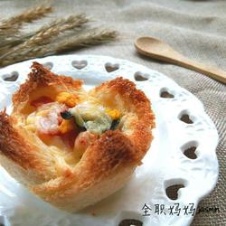 5. Remove the edges of the toast slices and roll them out with a rolling pin (the appearance is not required) Don’t remove the edges (I have three pieces without removing the edges).Use scissors to cut a small section in the middle of the four edges, shape it into a bowl and put it into the muffin mold!