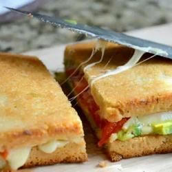 7. Add butter to a flat-bottomed non-stick pan and heat over medium-low heat.Add the entire sandwich, flipping once in between, and fry until both sides are golden brown and the cheese is melted, about 3 minutes.