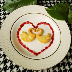 10.At this time, it is best to put it into the baking pan for shaping.The top is shaped into a swan head, and the bottom is the wings, as shown in the picture