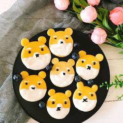 7.Use baby yogurt and black sesame and walnut sauce to draw eyes and nose
