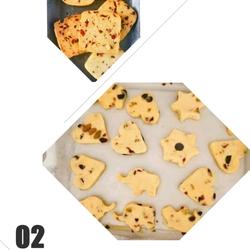5. Take out the frozen strips, cut them into squares, and put them in Oven (temperature 150, bake for 20 minutes, if the biscuits are white, bake for another 5 minutes).The shaped biscuits can be baked directly after taking them out.