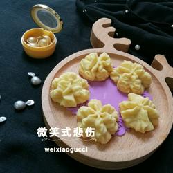 6. At this time, preheat the oven to 180 degrees, and squeeze it on a baking sheet covered with oilcloth.Make cookie flowers