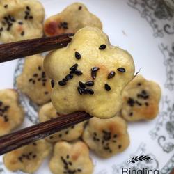 6. Roll out the dough, use a mold to shape it and add sesame seeds