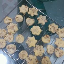 6.After taking the dough out of the refrigerator, roll the dough into a pancake, not too thick, and then use a cookie cutter.(If you don’t have a mold, you can just use a knife to cut into rectangular biscuits.) Then poke a few holes in the middle of the biscuits with a fork, grab some sugar and salt and sprinkle them evenly on the biscuits, and then put them in the oven.Temperature 180, 15 minutes.(The above temperatures are for reference only, and it depends on the temperament of your own oven),