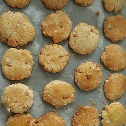 4.Take a small piece , roll into a ball and flatten, fill the baking pan, preheat the oven at 170 degrees for 5 minutes, bake for 15 minutes, then put it in the oven to simmer for a while, take it out and cool it before eating