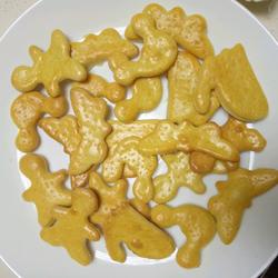 3. Use a rolling pin to roll it into a 0.5 cm thick sheet, and use a cookie mold to press out various animals.Shape the biscuits and place them on the baking sheet.