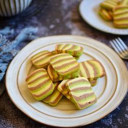 5.Roll the original color dough, cocoa dough, and matcha dough into thin slices